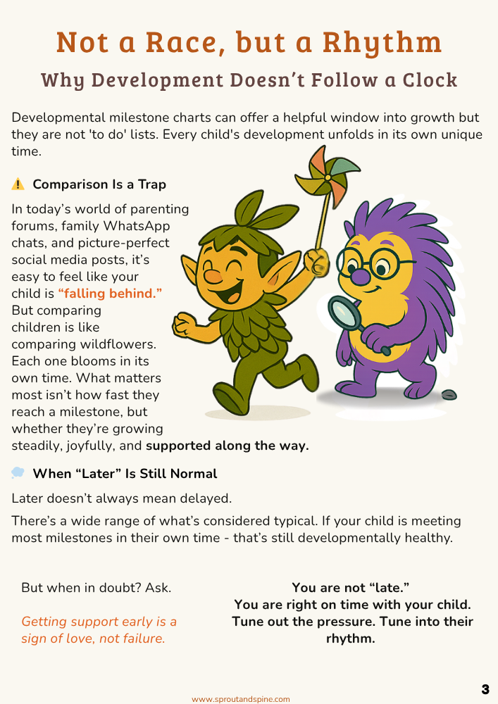 Milestones & Red Flags “Tracking growth, not racing to finish lines.” Milestone ranges, variability, when to watch and when to ask.